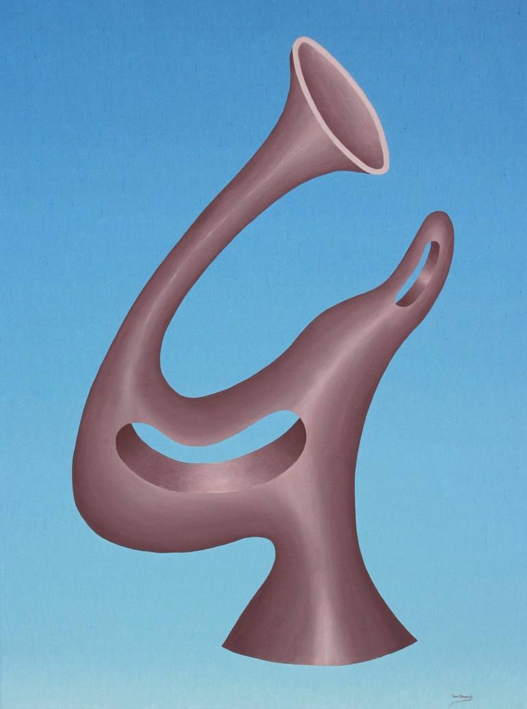 After I had already painted many abstract, surreal oil paintings, I stopped at a new design. This design reminded me of a dancer. When the painting was finished, I had the idea for "The Trumpeter", in which the figure merged with the instrument. The small series "The Musicians" gradually emerged fr...