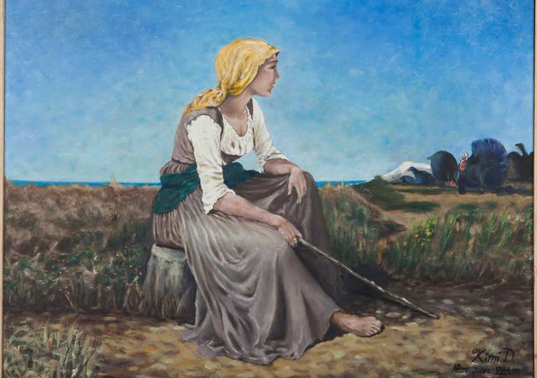 I was inspired by Jules Breton's work when I went to Clark Museum and decided to paint. I enjoyed working on the clothes she wear.