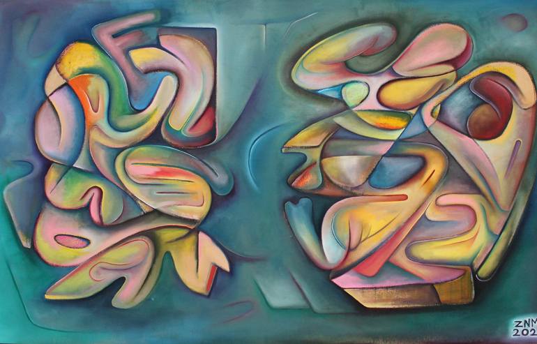 These two abstract figures remained after several weeks of applications of layers of oil paint. As with many of my paintings, I did not begin with this specific vision in mind for the piece, but rather had to apply many layers of paint before finding these two figures.