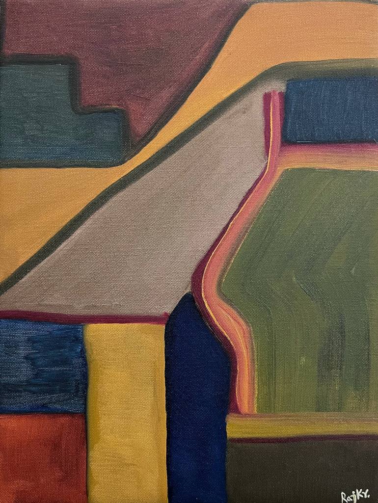 It is a very captivating abstract painting with brilliantly balanced geometrical compositions. This painting carries a tone of deep warm and cool earthy colors. It exhibits the exploration of different colors, scrutinizing values changing across the entire canvas and expressing a wide variety of emo...
