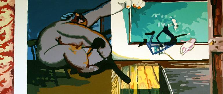 Scene from the rock opera The Wall by Pink Floyd. Oil on canvas, 50x120 cm.