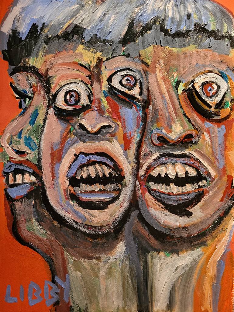Title: The Wanter Inspiration: Conjoined with memories of the past, fantasies of the future and present confusion. Acrylic on Paper 11 W x 14 H