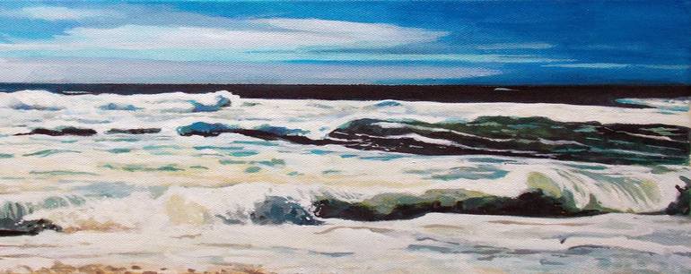 The Tide Rises the Tide Falls "But the sea, the sea in the darkness calls; The little waves, with their soft, white hands, Efface the footprints in the sands, And the tide rises, the tide falls." by Henry Wadsworth Longfellow Photorealistic landscape of the sea in acrylic on canvas.