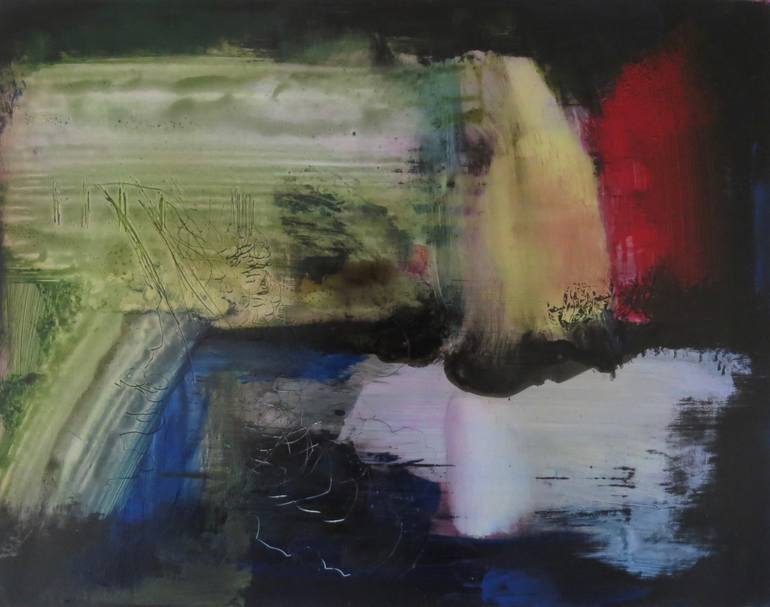 In one sense I wanted to portray a fairly traditional scene, albeit in an expressionistic style, of fields backing on to the edge of a small bridge over water leading to the edge of a forest. I used Indian ink, acrylic paint and alcohol on clay board to get a fluid feel to the painting as I wanted t...