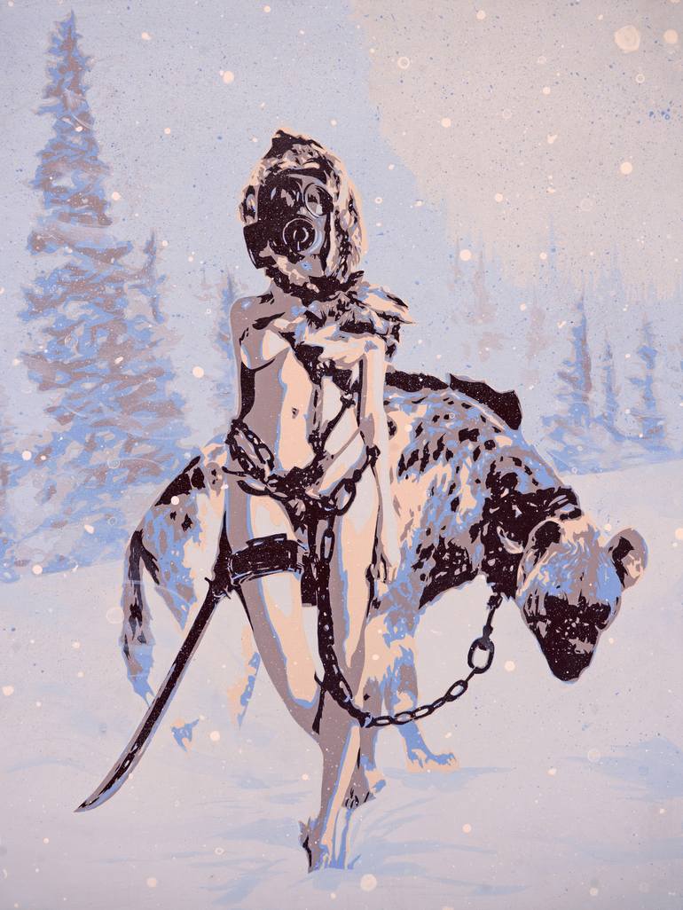 “Trá’s bold provocative imagery hits you in the face like a canvas-covered lead pipe (and I mean that as a compliment)…” - Seth Kubersky / THE ORLANDO WEEKLY Tramaine’s paintings are created with acrylic house paints using a varying mix of matte, semi & high gloss finishes giving them a richness of depth on rigid oak panel boards. The work speaks for itself, strong character themes that are story driven in a B-Movie alternate aPOPcalyptic world laced with dangerous warrior vixens, chainsaw wielding mutant monkeys, tight vintage muscle cars, and explosions - seriously, a lot of explosions. His imagery has earned him showings at La Luz De Jesus Gallery and has lead him to become Creator & Director for 3D animated music videos, most recently, "Lapis Philosophorum" for the metal band Junior Bruce which featured his unique style brought to life.