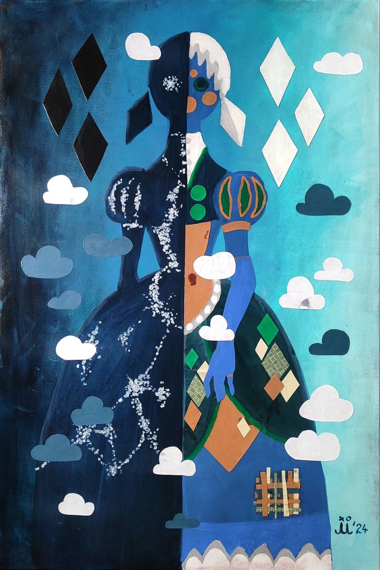 Artist's country of origin: Estonia Maria Evestus (born 1986 in Kuressaare) holds a Bachelor of Arts in Painting from the Tartu Art College (2014). She has been actively participating in exhibitions and Estonian art auctions since 2013 and has been a member of the Tartu Artists’ Union since 2019. About herself: “I am a painter who uses nostalgic elements and symbols as a gateway to the viewer’s subconscious. My works are characterized by a layered mixed technique, incorporating collage, acrylic painting, varnishes, graphite, fabrics, and more. An essential part of my pieces is their carefully selected limited color palette and rhythm, with the primary source of inspiration being (Nordic) nature and various substantive and formal contrasts. I am interested in interpreting the contemporary world, with its increasingly stratified history, through the amalgamation of different eras and symbols, creating dreamlike illustrative universes. As an artist, I consciously engage the collective subconscious of viewers through familiar symbols, often derived from nature, local and foreign folk tales and legends, sometimes intertwined with elements of pop culture from recent decades. These are open-ended timeless stories, into which the viewer can place themselves as bold adventurers or wise storytellers.