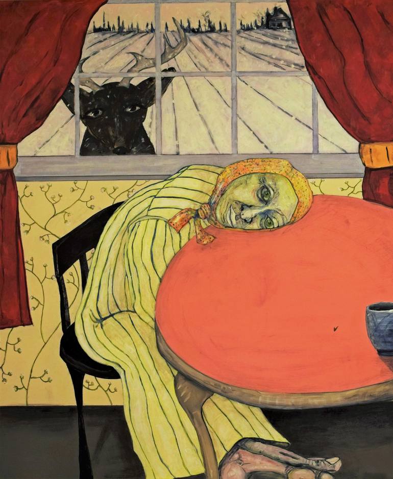 The Young Buck, acrylic on birch panel. Inspired by Andre Tarkovsky. About desire, love and loss.