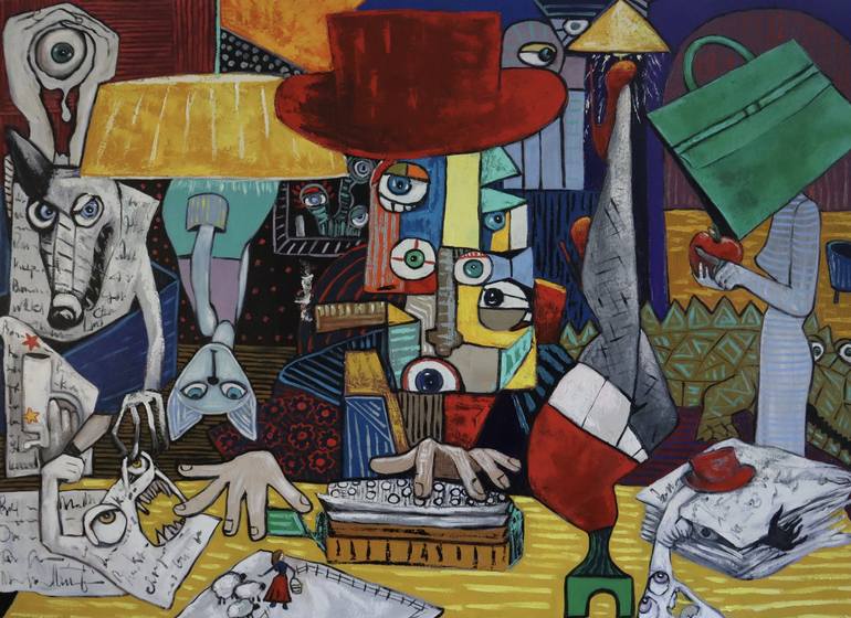 I think this is one of the craziest paintings I’ve ever done, and I’ve done a few crazy ones. The author is writing a book, and his imagination is running wild; his characters are a little like mine. Unlike many surrealists, who present their dreams, the central subjects of Ta’s work are people and...