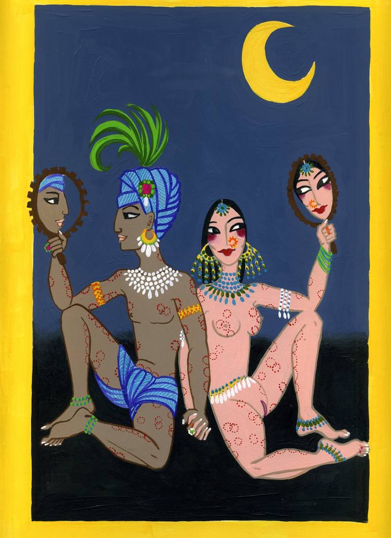 born in 1972 in Paris,painter &illustrator thematics: naif, ultra feminine, India, gastronomy,erotic,symbolism,portraits