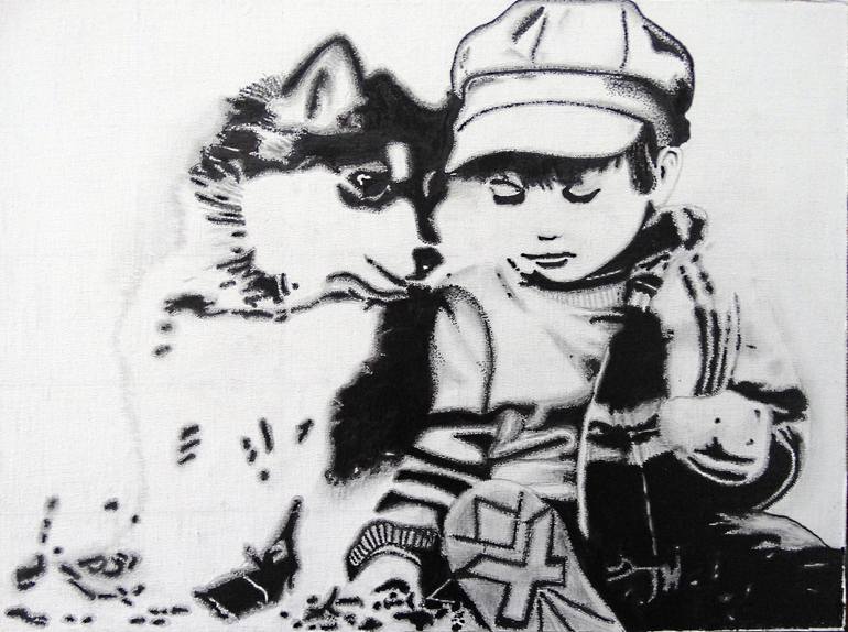 The childhood with all its enchantment, the friendship with the dog ... A infância com todo seu encantamento, a amizade com o cachorro... I can produce this same style of work in any size and from photos, any subject.