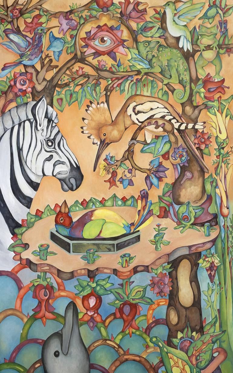 This work belongs to the series: "The animals of the jungle". The technique is oil on canvas on wooden frame. My work can be considered Naif and also surrealistic. It is the integration of the animal world integrating three spaces, water, earth and sky. The work is signed front and back. It is deli...