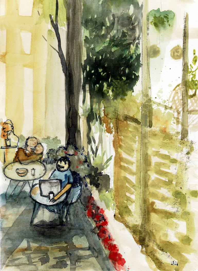 An afternoon in the backyard terasse of the Tazza d´oro Coffee in Berlin. This series of watercolors is the result of lazy afternoons of sketching environments and figures