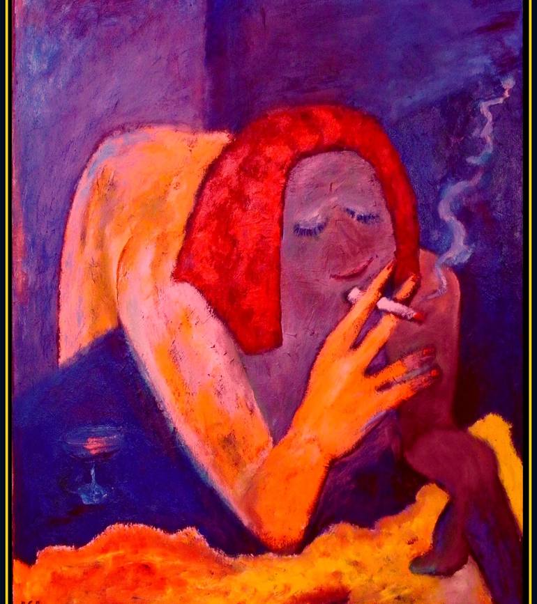 Girl awaiting, meanwhile smoking, that may be the pendant to the cigarette after ...