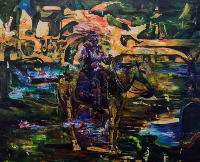 "The cursed fact" is a pictorial experience where figurative concepts are fused within an abstract dynamics of form and color. Composed of a mixed technique of acrylic and oil paint on canvas, it is available for shipment packed in a tube and ready to be mounted on a frame.