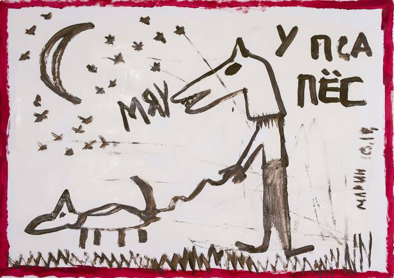 The dog has a dog. Why not? He also needs a friend. This paints on paper, the dog is real. The dog has a dog...
