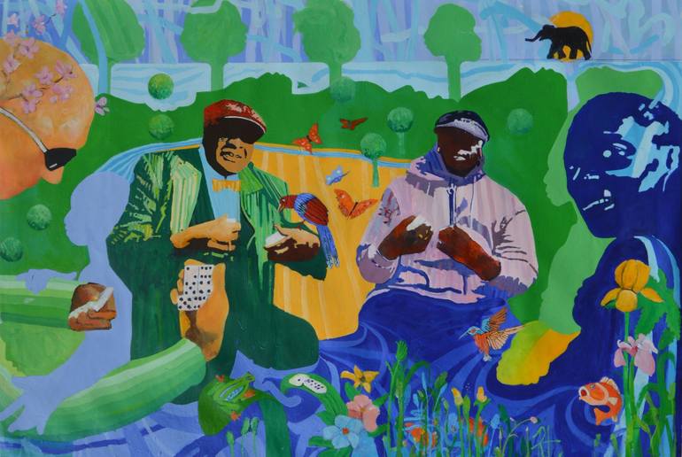 I am painting a series of graphic fantasy works of various characters you come daily to the Maida Hill area of London. Here the Caribbean domino players, who slam down the winning domino, laugh, smoke a little weed, drink a peg of rum, bring the joy, exuberance, skills, wonderful clothing designs to...
