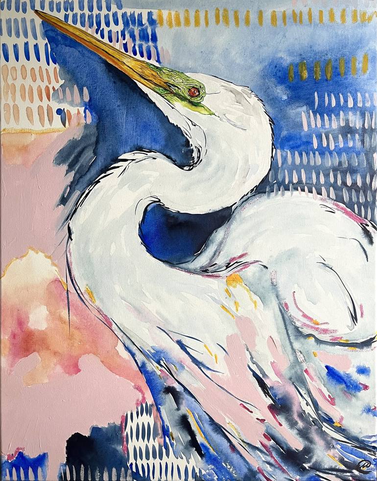 The egret. 2024 Mixed media. Unframed. Ready to hang.