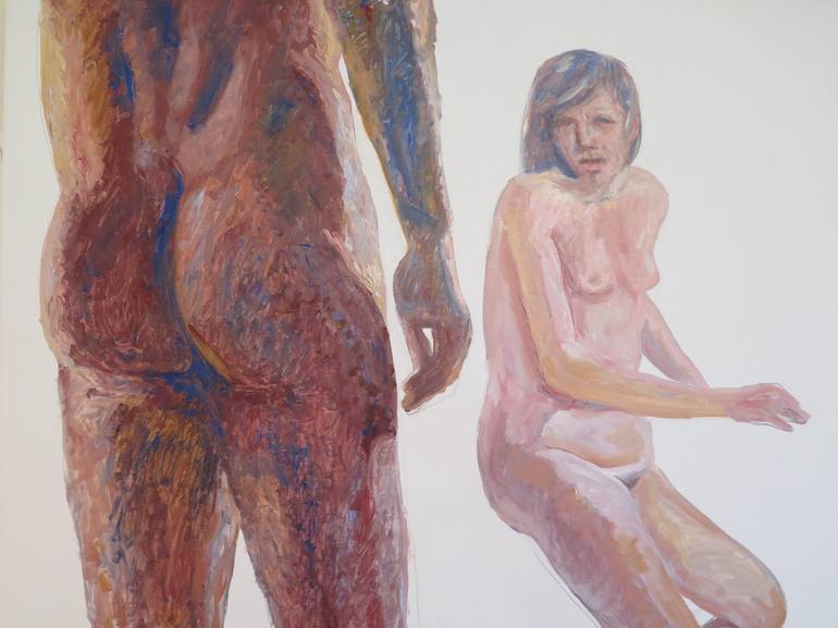 This painting belongs to the subseries "The painter and the model versus the painter and the model" within the series The Blanche Line. The new reality of female painters who paint nudes with male models. What could seem at first glance to be a violent scene is thus transformed into a professional r...