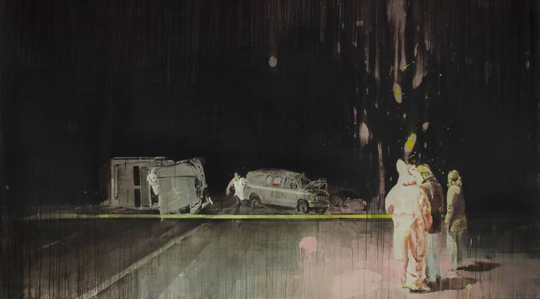 Fernando Gómez Balbontín (1981), is a Chilean artist and architect who has been creating and painting as a way of questioning and resisting his environment since childhood. His creative process involves pictorial experimentation, traveling between figurative and abstract art. His work consists of building a portrait of western consumer society by using recognizable elements such as destroyed technological bulks, phalluses and virgins. These emotionally charged imagery allows him to express a unique perspective on the links between death, consumption and religion. His paintings have been exhibited internationally and are part of private collections in Chile, China, the United Kingdom and the United States.