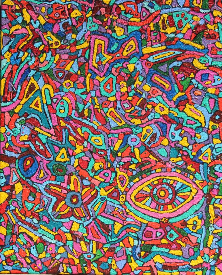 This was a painting that I got lost in. Like lying contented in a tiny room of shifting colors, working every 4 or 5 sq inches separately. I still remember.