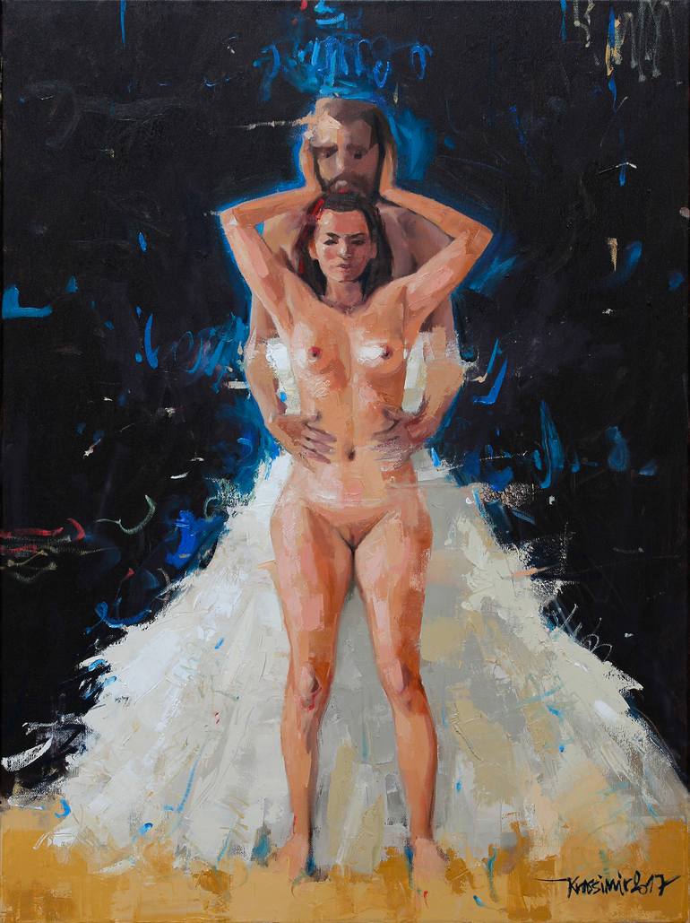 This work was inspired by the relationship between two of my models. It is interesting to me the Theme of the female characteristics in the man and masculine characteristics in the woman. By this painting I am trying to touch this theme.