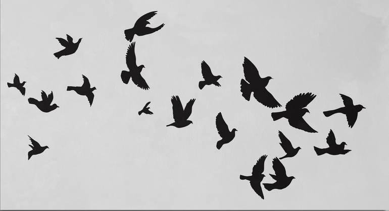This series of paintings is inspired by the dynamics of flight and interaction of birds, their lightness and freedom. Each bird is generalized to a silhouette and organically creates a common composition. The placement of the birds is not symmetrical, they fill the space unevenly, which gives a se...