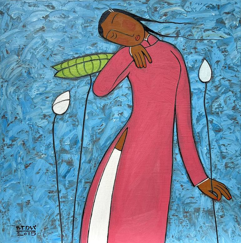 Bui Trong Du was born in 1976 in Hai Phong, he currently lives and works in Hanoi. During his studies and work, he traveled to many places in Northern Vietnam, falling in love with his homeland's landscape and imbued with traditional cultural values. Most of his artworks have an Oriental figurative style, sometimes mixed with a bit of impressionism or expressionism. With a simplified and stylized form of expression, the soft penmanship echoes Vietnamese folk paintings. Artworks such as summer lotus flowers, young women with lotuses, street corners, flower vases, and childhood memories such as flocks of birds, fishes, frogs, dragonflies... show the melody of beautiful, innocent life. Creating quality through mastering lacquer material is an important highlight in the work, it contrasts with the simplified form, this combination has created the artist's mark in the context of Vietnamese painting during the Integration.