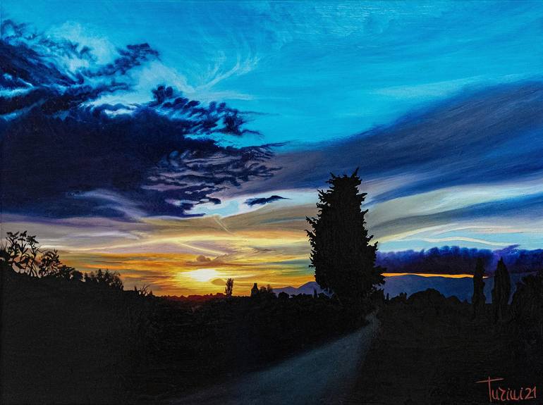 "I'm a landscape painter and I bring the beauty of the Italian landscape to the world" I was born in 1986 in Tuscany, where I still live and work, inspired by the particular beauty of this Italian region. I studied at the International School of Comics in Florence and worked as a comics colorist, thus having the possibility of studying color also from a scientific point of view. But soon my love for nature pushed me to abandon the world of comics to dedicate myself completely to painting landscapes. I studied the painting techniques of the ancient masters of Italian Art, particularly Caravaggio, but also the French Impressionists, who had in common with him the direct observation of nature and the prominence of light. I love painting the beautiful landscapes of my Tuscany often working outdoors, as French Impressionists, but always looking for the light-shadow contrast, as Caravaggio used to use. I apply to the landscape the same strong light-shadow contrasts typical of this great Baroque master, with the intent of experimenting an use of light in a metaphysical sense. If he investigated the soul of man with light, I tried to investigate the metaphysical face of nature with his own light. I have collaborated with some important Italian art galleries, and many of my artworks are in private collections around the world. In 2025 I started a collaboration with Samsung and LG, who included two of my paintings in the Art stores of their Frame TV. I work also on commission. My Instagram profile: lorenzoturiniartist