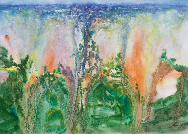 Ming-Ching Wang was born and raised in Taipei, Taiwan, in 1985. He was grown up in working in ceramic making factories with his parents. Graduated from the digital media design in 2009. After mandatory military service, he worked as a video editor in a private gallery for an year. Started painting from 2011 while traveling in Australia for two years. Married in San Francisco by 2013, and relocated to Palm Springs in 2017,and move to Santa Fe by 2022. Also traveled to southeast of Asia very often from 2012 to 2021 for inspirations. His art tends to be abstract, landscape, plein air, and expressionism. The mediums he uses are watercolor and acrylic. Subjects are towards to environment, humanity, and in search of the essence of memory.