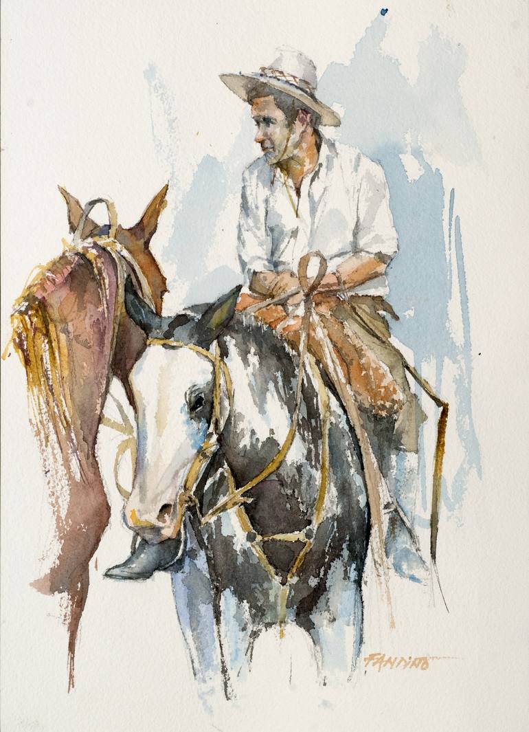 My watercolors try to convey the labor of the gauchos* as well as the life and landscape of my beloved homeland, Uruguay. * Uruguay’s traditional rural workers