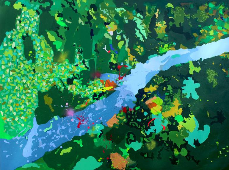 This work is inspired by the great amazon River... the water is invaded by the vegetation that is in a jungle... pure nature full of vivid and vibrant colors. The roads that lead us in life are full of difficulties but the river ends up spreading in the sea...