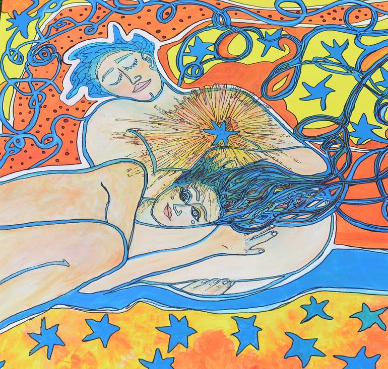 The True Lovers Is a Ilustration about the emotional connection felt between 2 lovers. In the distance, in the dreams or at the immediate present , they have the miracle of happiness just Happening in an eternal moment.