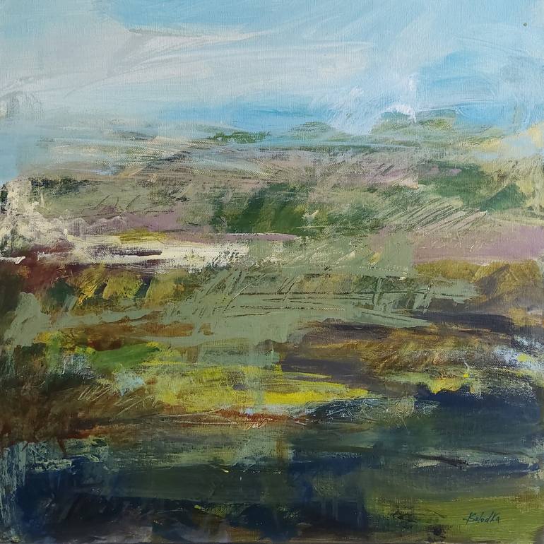 This abstract landscape is full of tenderness for the country and hope for a peaceful life. The artwork "Silence" was created after the evacuation from Ukraine in the first days of spring. On the way to the Polish border, I drove past endless fields, and beautiful hills, where the first grasses were...