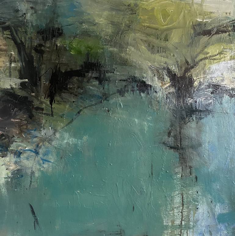Inspired by a place that the artist and her children found. A magical place on the west coast of wales where the river had carved an island around which it flowed. The colour and composition is to enviro a secret place full of the anticipation of adventure.