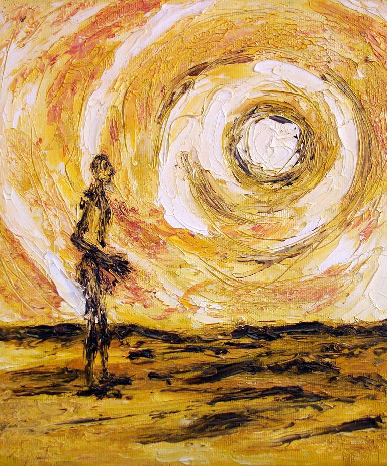 The man and the sun - Hard sun, the human condition (Landscape Expressionism Series) This work is part of a series of Expressionism landscapes. I often worked with small to medium sizes. When I painted this picture was a very hot, in Italy and in my life. I devoted myself to stodio and looking Exp...