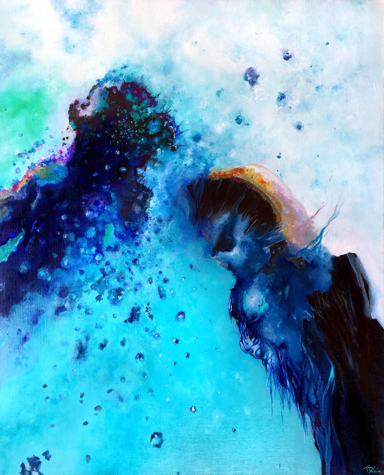"The refuge of the misanthrope" is the first opus of the series entitled "Chrysalis" devoted to withdrawal, to solitude in view of a forthcoming blossoming. This abstract lyrical canvas, essentially blue, invites us to calm, to serenity, it is a foetus, a cocoon, the refuge of a soul in the making. ...