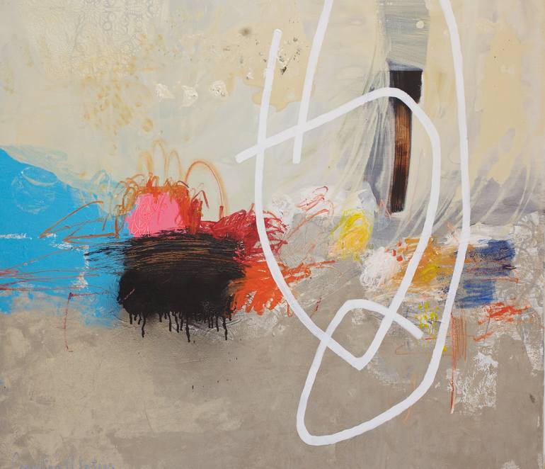 The paintings of Swedish born, Cyprus-based abstract painter Carolina Alotus (b. 1970) are luminous, fantastical arenas in which beauty and harmony negotiate fiercely with chaos. Her compositions are active and energetic, sparking visual tension from unexpected relationships between colors, forms and textures, and from the feverish juxtaposition of seemingly disparate mediums and techniques. “As an abstract artist, my work is a continuous exploration of emotion, movement, and the intangible forces that shape human experience. Created through a deeply intuitive process, my paintings emerge organically, guided by instinct rather than predetermined outcomes. I embrace spontaneity, allowing color, texture, and form to interact freely, resulting in compositions that feel both raw and deliberate. My art is not merely a visual expression but an invitation—an open-ended dialogue where each viewer finds their own meaning and emotional resonance.”