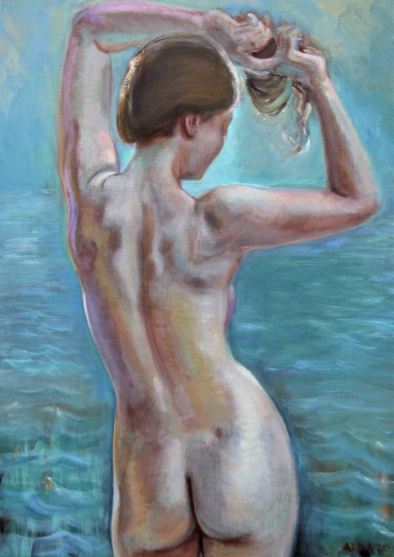 One summer I've spent in Florence, often visiting its museums, making numerous sketches. I have painted this big picture. The 20-year-old model was amazingly beautiful. The spirit of the great Renaissance is felt in this painting. But you can see a modern young lady in this work. She is charming, in...