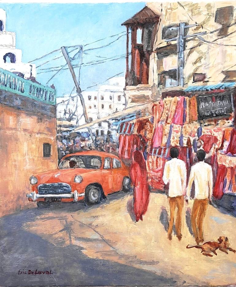Composition I made based on several photos and sketches done in India. I like this old Indian car Hindustan Ambassador you rarely see nowadays. Indian colours are so lively that I always want to paint them.