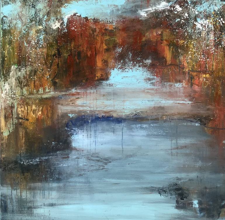 I see an abstract painting but I can see nature too. Strong nature that ‘s overwhelming. I can see rocks, water, forest, but it’s not what you look at that matters, it’s what YOU see. Packed between two layers of wood to protect the painting during transport. Weight painting is 3 kg, packed 8 kg....