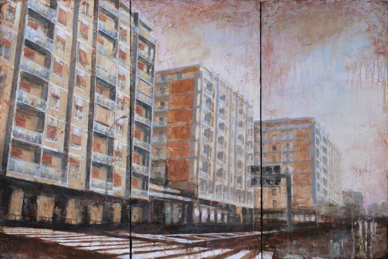 I am a visual artist born in Italy and based in Bristol, UK. I graduated from “Academy of Fine Arts" in Rome with a MA Hons. Since 2000 I exhibited in solo and group exhibitions and I was selected for several expositions, festivals and workshops over the years. My work is published in specialized art magazines, books and catalogues. I started to draw and paint since I was a child and is what I love more.The influences of my work moves from places I have experienced my all life.My work is focus on the landscape genre, contemporary urban and suburban views, intended as insight on our environment and what will remain of our time. The landscape genre for me is a departure point to examine human presence and its encroachment on the natural world. My work is based on photography and drawing. I also love to mix different and incompatible media, like oil, acrylic, enamel and layers of different primers and materials, which give my work a textured look.