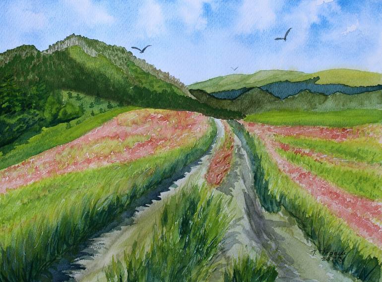 Title: "The road to the felled forest" Size: 9" by 12" (23 cm by 31 cm). Materials: watercolor paper 300g/m2, watercolor paints, artist brushes Artist: Tetiana Teresh Country: Czech Republic Creation date: 2023 I painted a series of watercolor paintings "Ukrainian Carpathians" while in Ukraine. I w...