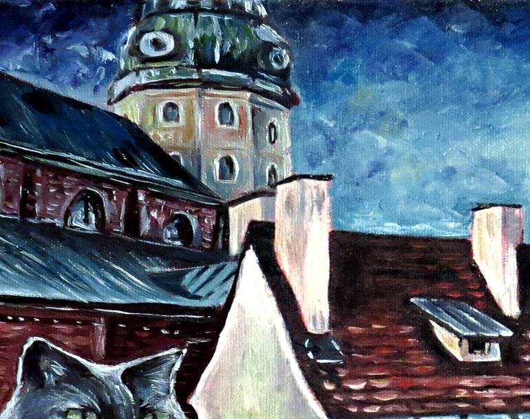 Original fine art painting "The roofs of Riga Old Town", 50x40cm (approx 20x16") oil & damar varnish on high quality canvas. Canvas stretched on a wooden frame, and the sides are completely painted. (No frame or stretching needed.) The work inspired by my hometown - Riga, by small medieval streets ...