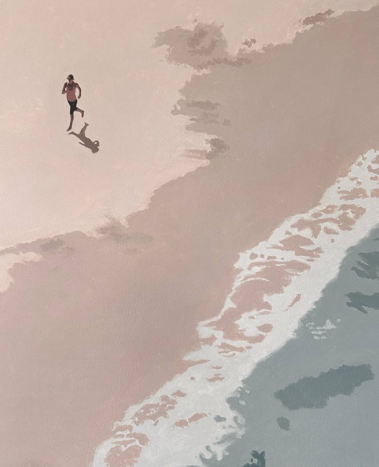 This work expresses a moment of happy solitude. Early in the morning. Only the sea, the sand and you. All the rest disappears. Nothing matters. You are at peace with yourself. The aerial view reinforces the beauty of the environment and our place in it.