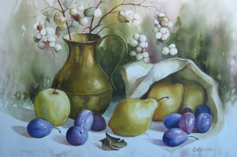 Still life painted on professional paper 300 gsm, with watercolour.