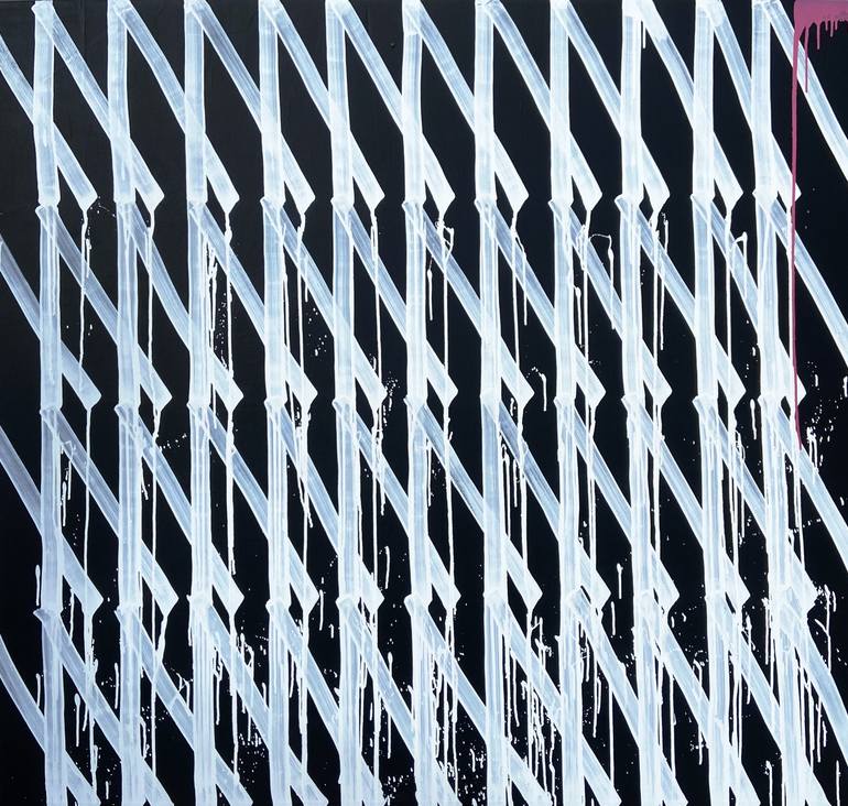 Industrial enamel and acrylic on canvas, the piece is not designed to use a frame and is ready to hang in your new home. The work arises from a reflection of the space in which I live, more and more I realize that people live on the edge, referring to their day to day, that lifestyle immerses them i...