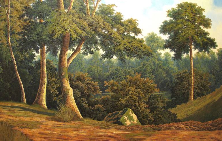 Hanoi and his vision of paradise The landscape of Cuba is more than its identity. It is its pride. It is imprinted with the blue of the sea and the sky, the bloody ochre of the land, and the green of the woodland and fields in perpetual summer. It protects its vision of a country that defends itself from modern degradation and preserves the tender memory of its horizon. It is not the wild jungle or the burning hot desert, it is more the soft meadows, the sedate clear river, and the quietly vegetated hills that create this diverse, serene palette. That is why it is not unusual to see the magic of its landscape captured in the visual arts. The value lies in the contrasts. When I first met Hanoi Martinez Leon 7 years ago, and discovered his paintings, I was sure he was not just another of the many painters who use landscape as a form of expression. His visual inspiration may have come from prints in important old Russian catalogues of the 80s, that were of very good quality, and which some still keep in their private collections. From all the prints he saw, he chose the landscapes, which were very well represented in both the Russian and Cuban cultures. While the Russian paintings are superb, they have nothing to do with Cuban, and that is where Hanoi's talent lies. Because the perfection of the Russian academy was only portrayed to him in images, he worked hard to discover Cuba's light - what is and what is not the tropics, what is and what is not insularity - and to search his imagination for the fragments of reality that he would illustrate on his canvas. These fragments, stored in his imagination, come together like a puzzle. Using one of the most difficult painting techniques, this artist brings them to the canvas, creating his own garden. Spatula in hand, Hanoi attacks the canvas rectangle. It has neither choice, nor complaints about being illustrated. He then uses a paintbrush to clarify his intentions and arrives at the most intricate details, his meticulousness forever reaching for mastery. This artist has no false pretences, only desire and curiosity. This is why he, at such a young age, could arrive at a place that others could only reach after many years of advanced study - the place where the light of Cuba is kept. One day, someone suggested that the work was done from photographs and I remember seeing Hanoi's ironic smile.