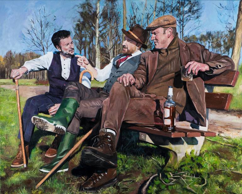 I am fascinated by people – why we choose to gather, what food we share, which outfits we enjoy. I simply observe, and my observations can fit any period. The spontaneity of such occasions intrigue me, as individuals dress up, place a bottle of their favourite wine on the table, and effortlessly start to talk. I watch. I stare. I also wonder about events before and after the moment I have caught on canvas. Because the image itself is only the start of a longer conversation. That is why I prefer real contact with my subjects, whether they are strangers or my friends. People may have come together on impulse, or the tableau may be staged. Once the group is together, the occasion generates its own unique discussions, expressions, atmosphere, authenticity. Even when lodged in our history, it will resonate today. I love history and especially enjoy artists like Lovis Corinth, Gustave Courbet and Paula Rego. When I am not painting I like watching movies. Often during painting I will play a movie in the background for inspiration. Roeland was born in the Netherlands in 1978 and graduated at the Royal Art Academy in ‘s Hertogenbosch in 2004. Roeland has had several exhibitions in the Netherlands, but also in Belgium, France, Poland and the USA.