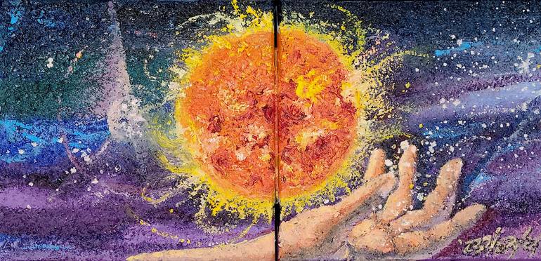 The vast sun that you can't even get close to Look at that reckless courage that controls. Hang it in the space, your limitless abilities and passion, Get your hands on the sun's strong energy!!! Your strong courage and mental strength. Make up for good with this painting!!! --- Oil, sawdust on...