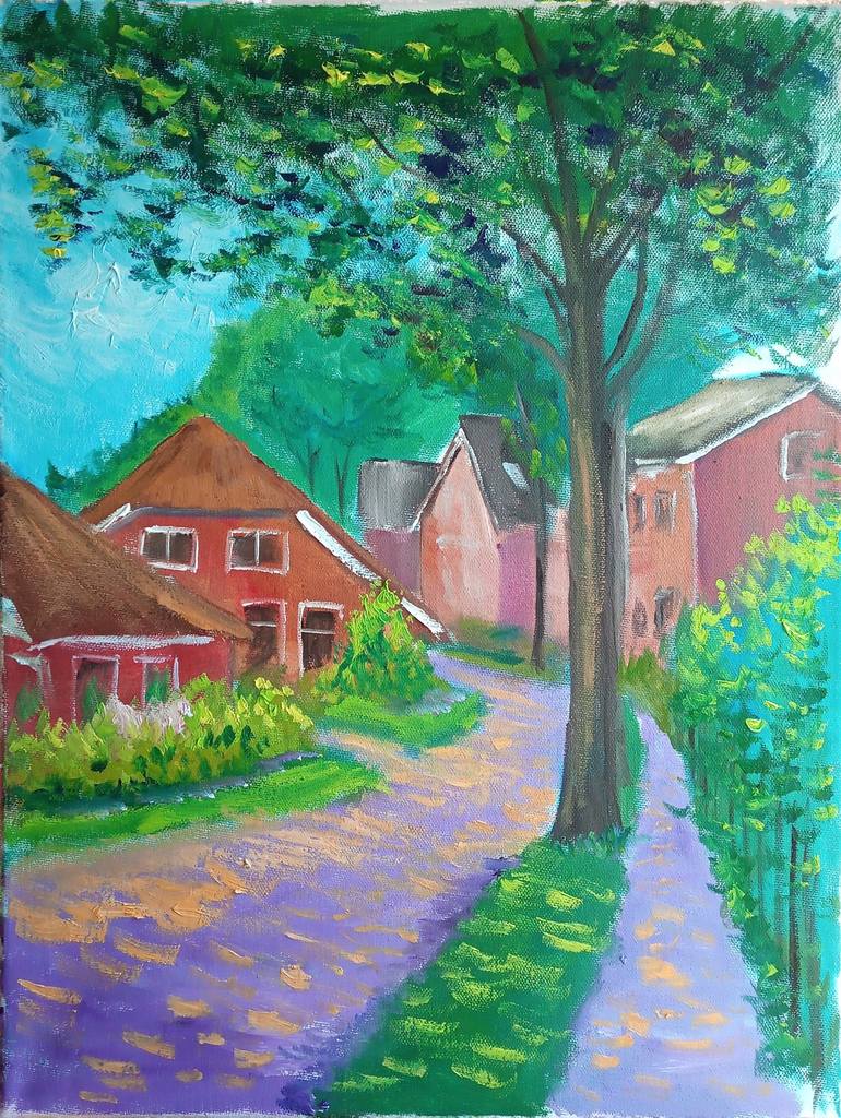 The painting was created from life in the Dutch village Dalen on a sunny summer day in impressionistic style